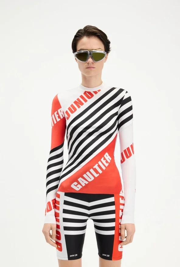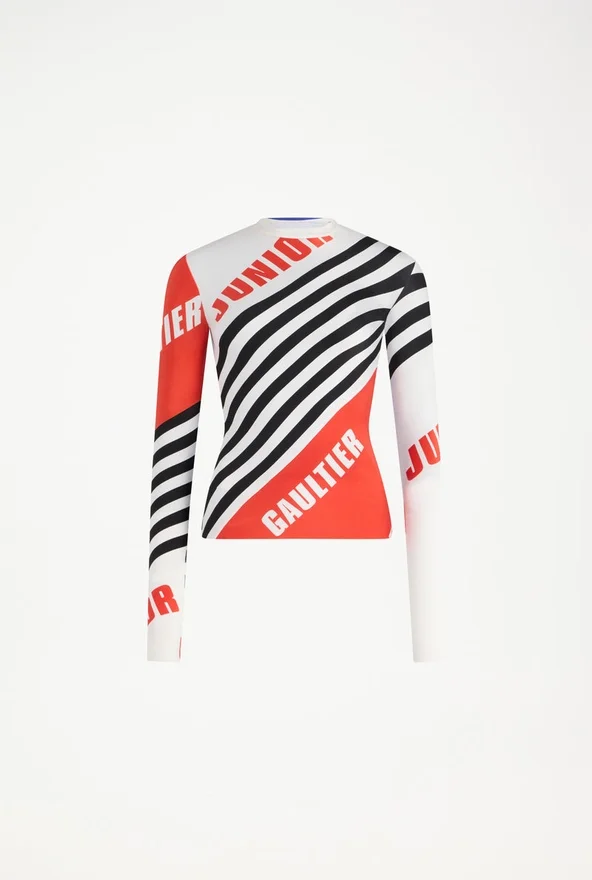 Multicolor Jersey Lycra Long-Sleeved Top with “Junior Gaultier” Print.