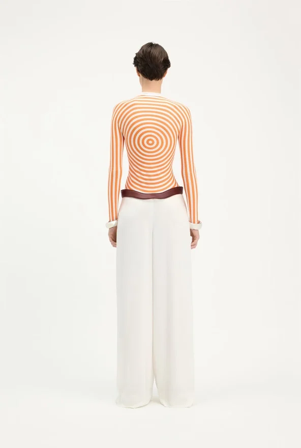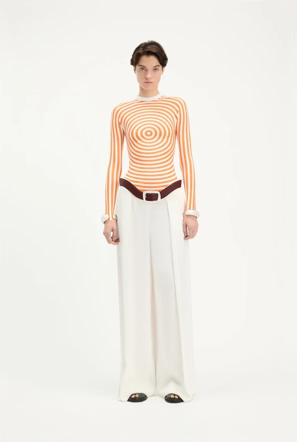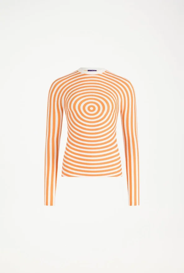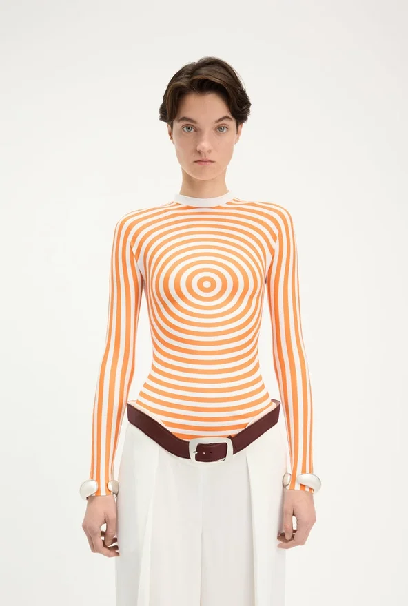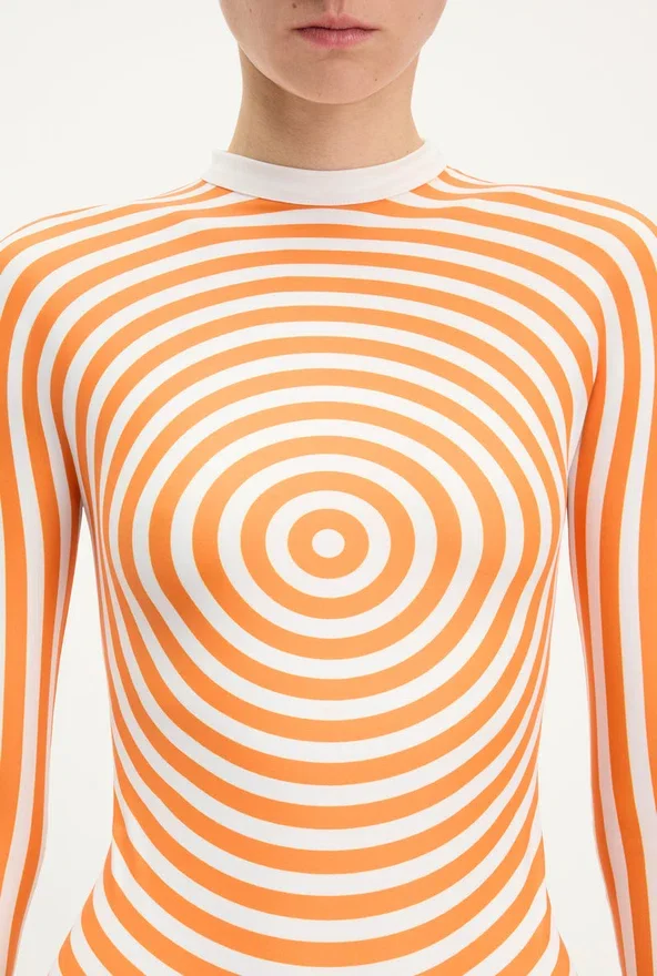 Long-Sleeved Orange-And-White Lycra Jersey Top with “Target” Print.