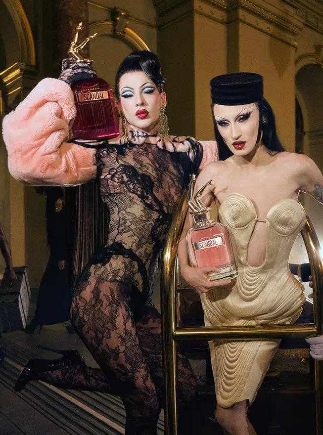 The Scandal Perfume Embodies Jean Paul Gaultier’s Femininity in a Chypre Fragrance; An Elegant Parisian, Festive and Sexy Who Gets Freaky in the Scandalous Neighborhoods of Paris.