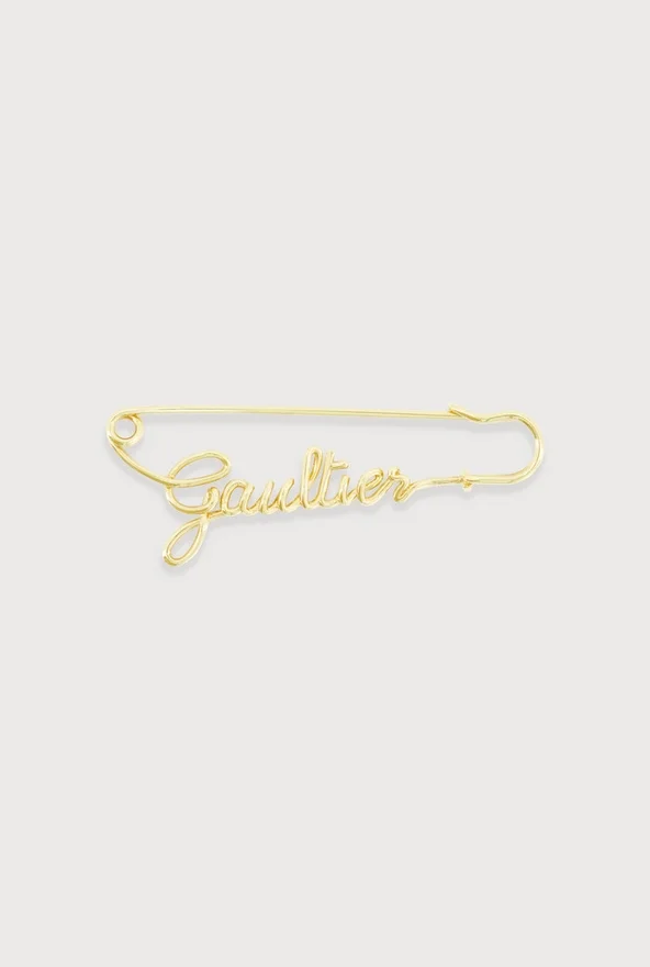 Gold-Tone Safety Pin with Gaultier Lettering.