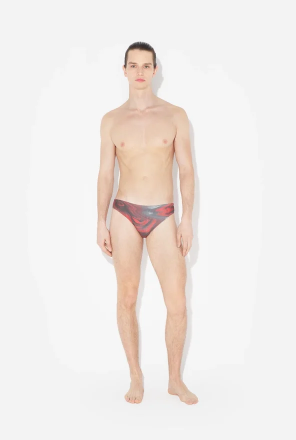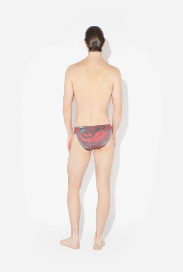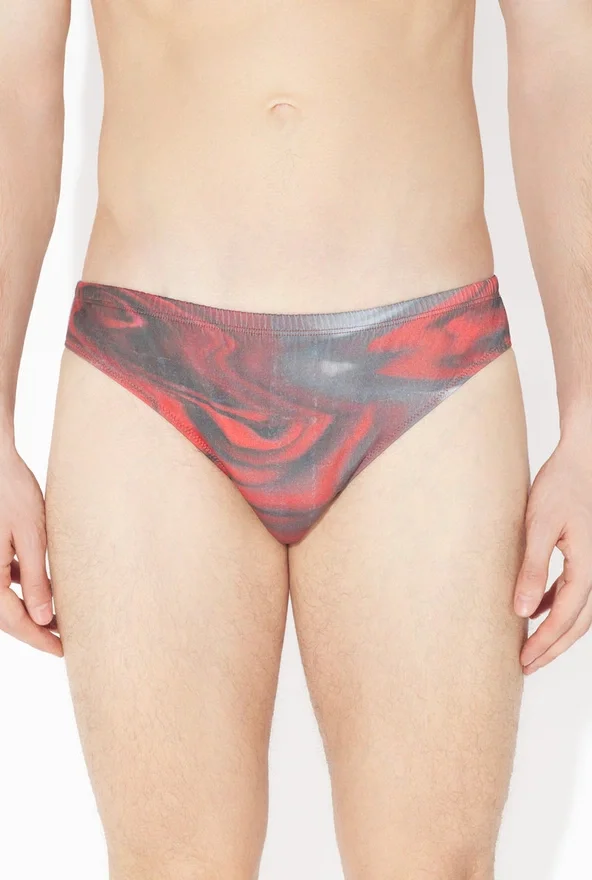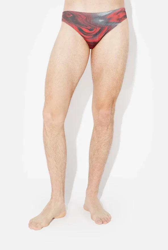 Red Swimming Briefs with “Blurry Roses” Print.