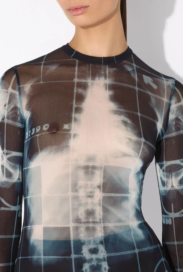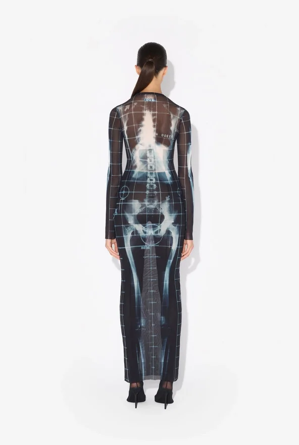 Long Black Tulle Dress with “Squeletor” Print.
