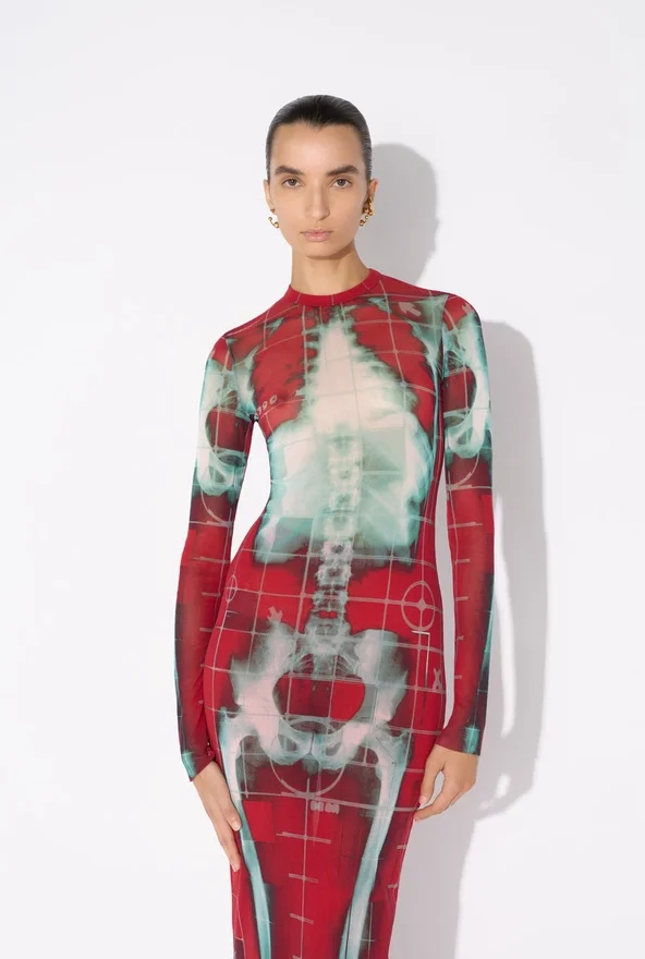 Discover the Long Red Squeletor Dress Jean Paul Gaultier.