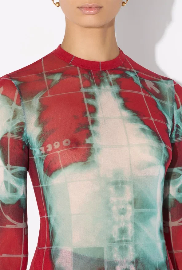 Long Red Tulle Dress with “Squeletor” Print.