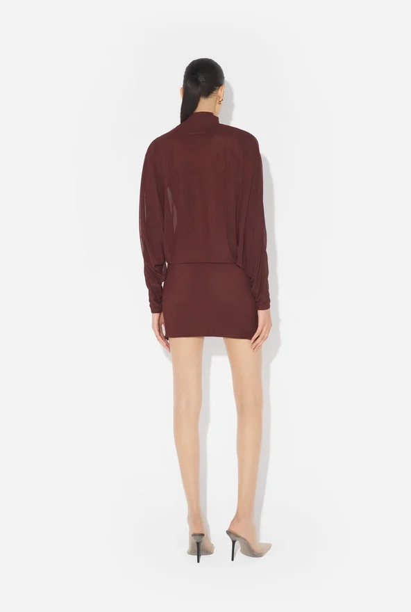 Short Burgundy Tulle Dress Embroidered with a Jean Paul Gaultier Sequin Label.
