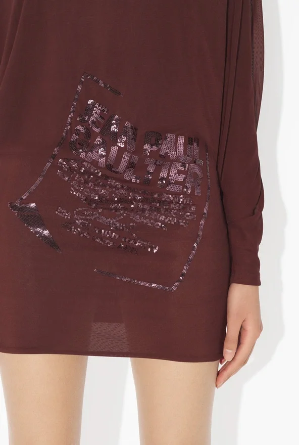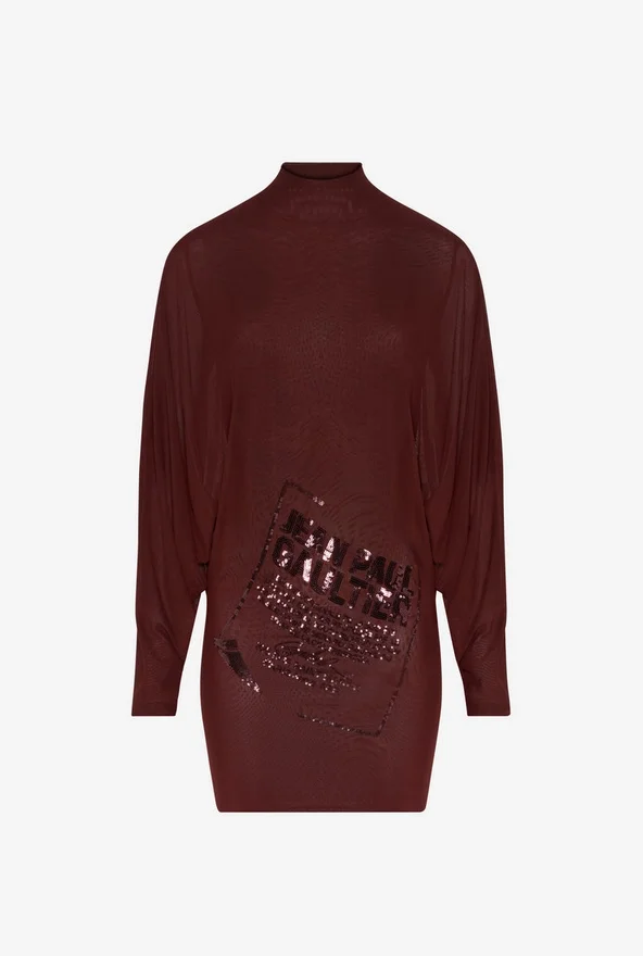 Discover the Short Burgundy Embroidered Dress Jean Paul Gaultier.