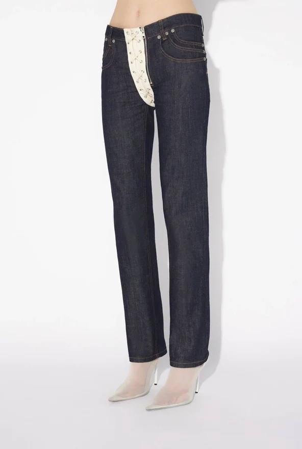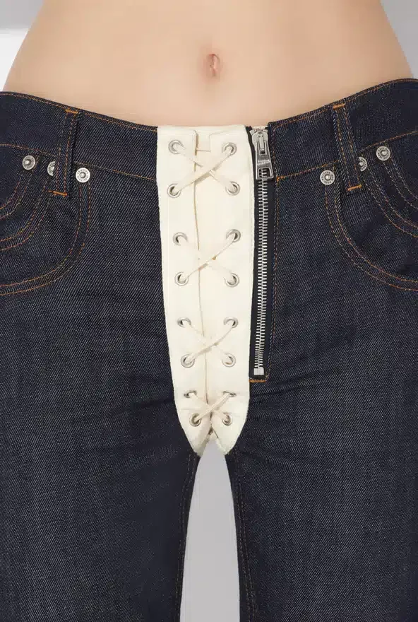 Discover the Contrasting Lace-Up Denim Jeans Jean Paul Gaultier.
