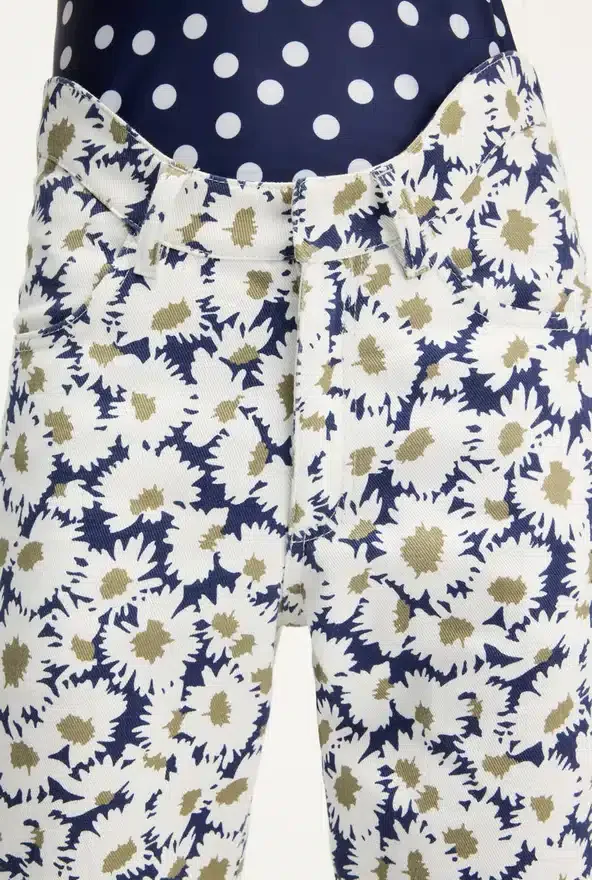Discover the Curved Denim Flower Jeans Jean Paul Gaultier.