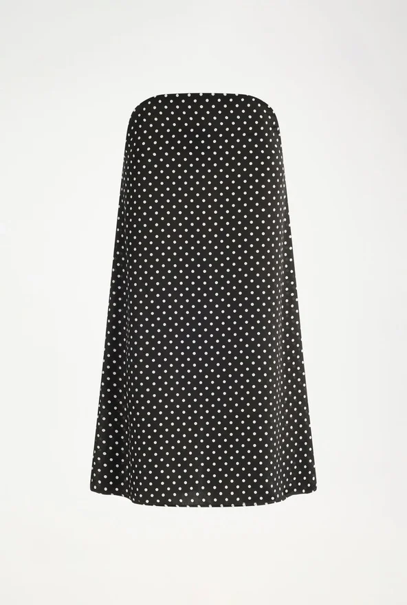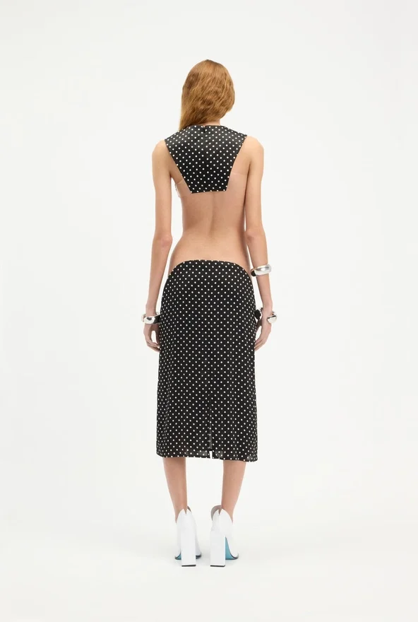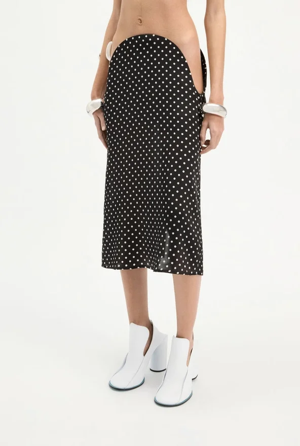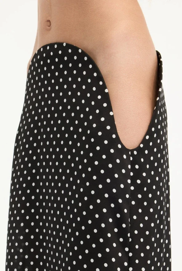 Black Silk Skirt with White Polka Dots and Cut-Out at Hip.