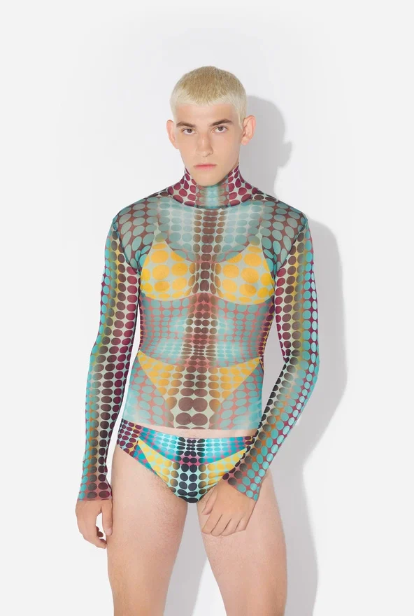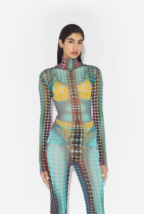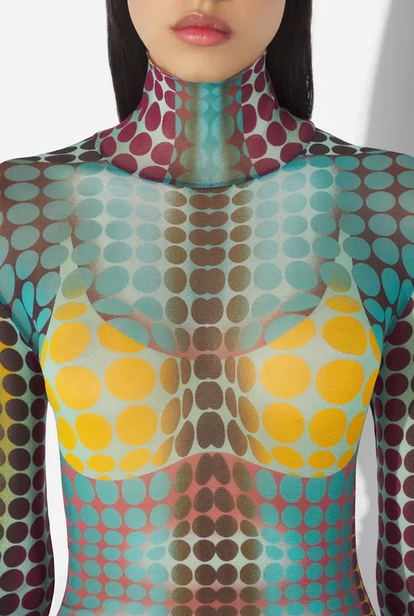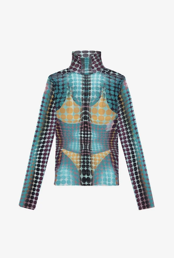 Discover the Blue Dots Print Mesh Top Jean Paul Gaultier.