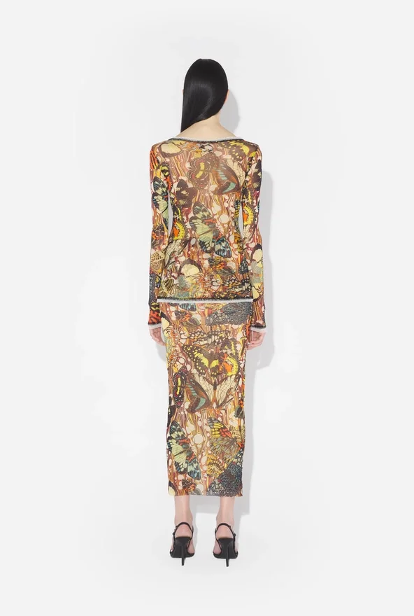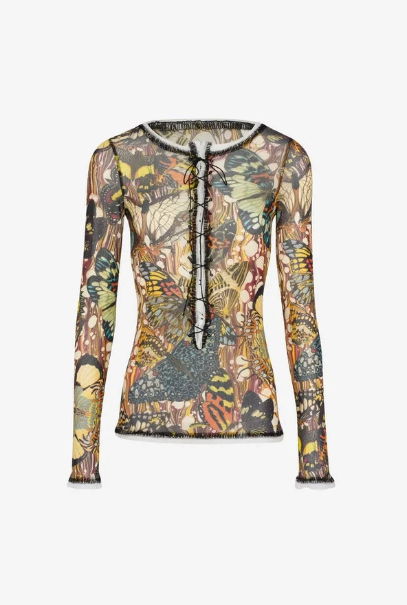 Long-Sleeved Tulle Top with Yellow Butterfly Print.