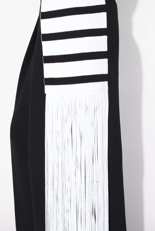 Black and White Cotton Mariniare with Slit in Front and Fringe Details.